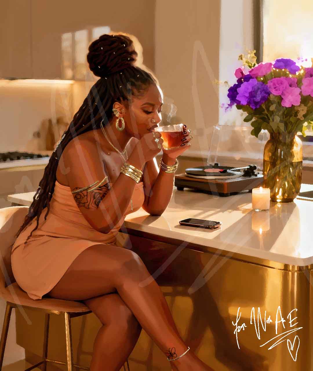 ABOUT THE ARTISTI create art for Black women because we are magic.. unapologetic, unshakable, and worthy of being seen in every shade of our brilliance. My work is a visual love letter to our lived truth, from the gravity defying crown on our heads to the legacy of strength etched into our souls. Each piece is rooted in faith, culture, and self-worth.